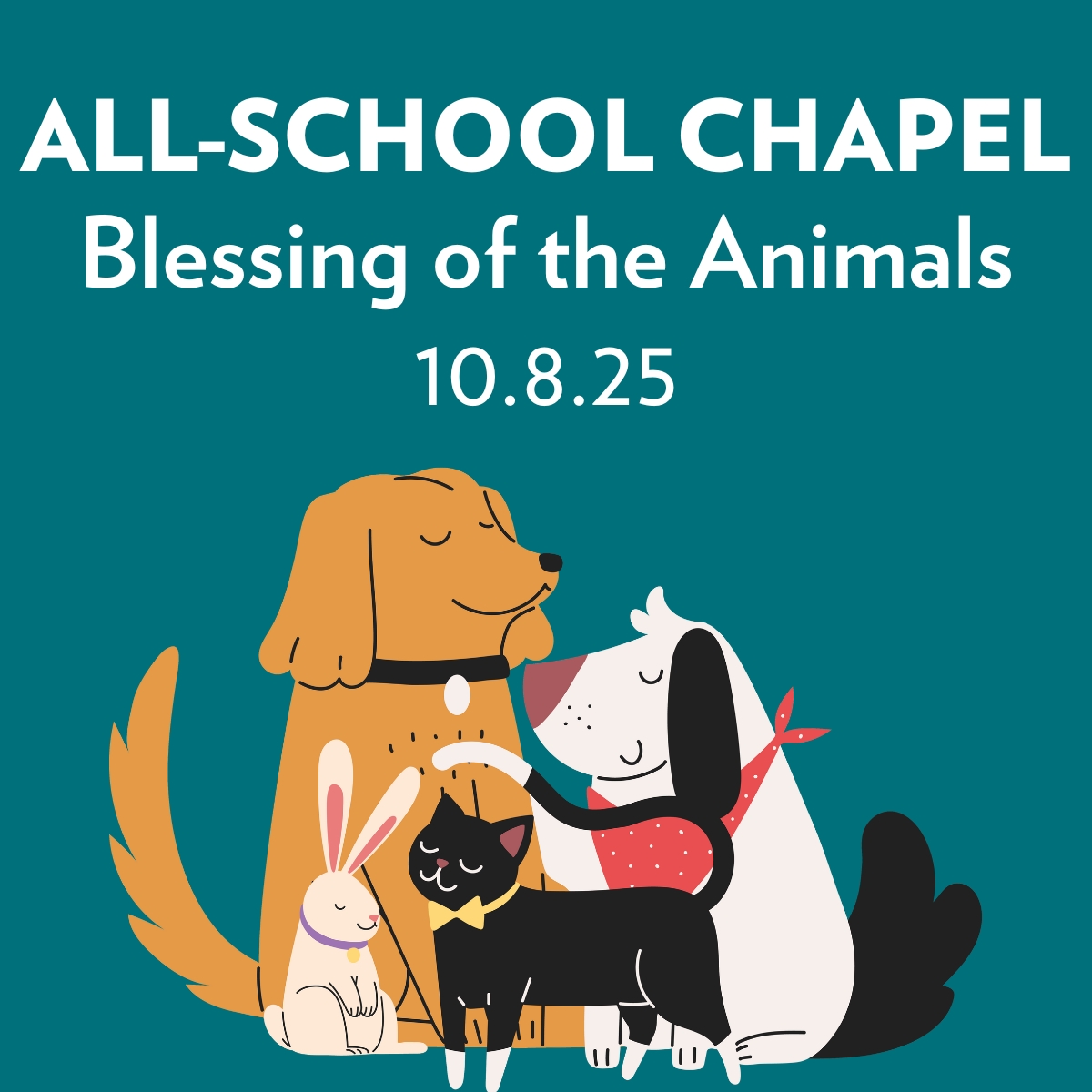 Join us for our All-School Chapel on Wednesday, October 8th from 8:30–9:30 AM in the Nave as we celebrate the Feast of St. Francis of Assisi. Students, families, and staff are invited to bring a photo of their beloved pet to be blessed. This special tradition honors the bond we share with animals and reminds us of our responsibility to care for all of God’s creation.