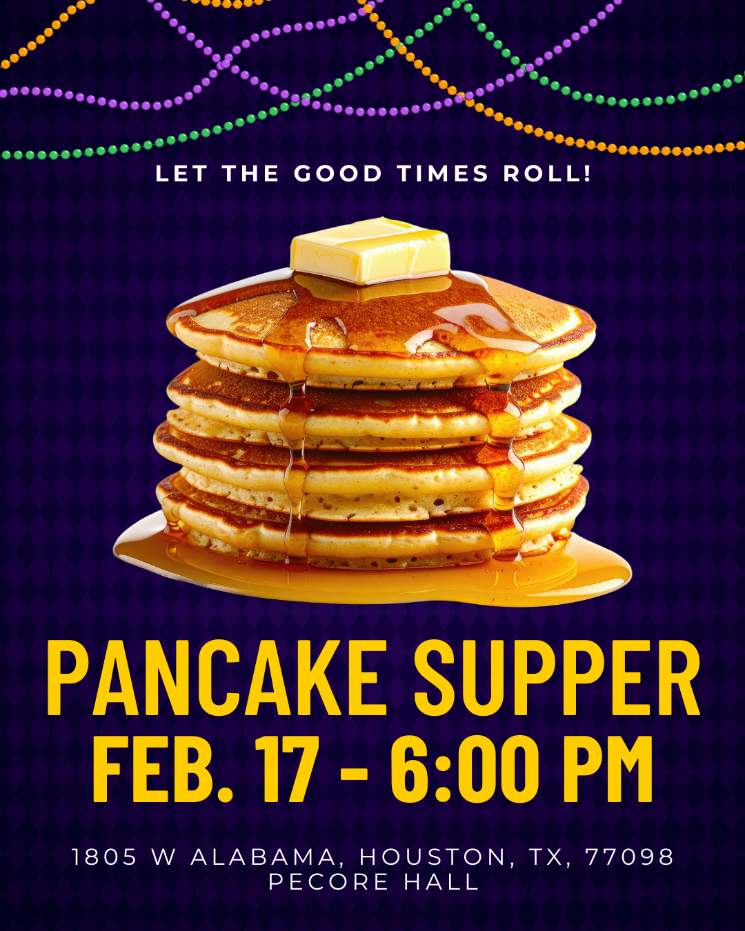 Join us for a community Pancake Supper on Tuesday, February 17, at 6:00 PM in Pecore Hall! This festive Shrove Tuesday tradition is a fun, welcoming way to gather before the season of Lent—featuring breakfast-for-dinner, joyful connection, and plenty of toppings. All are welcome, including friends and neighbors. RSVP here: https://app.onechurchsoftware.com/ssec/events/6983