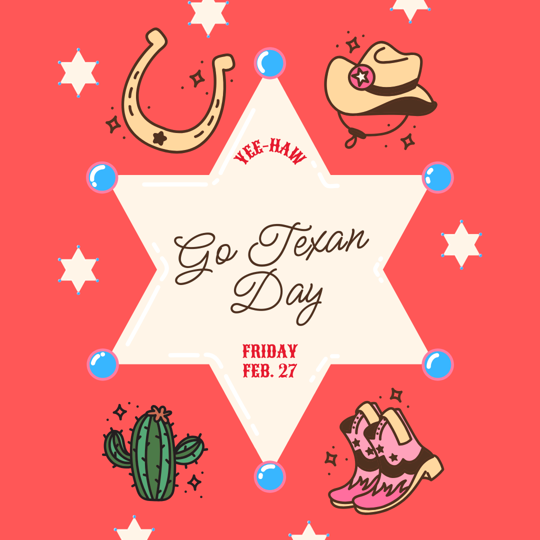 Go Texan Day is Friday, February 27! Students are invited to come to school dressed in their best rodeo and Western gear—boots, denim, bandanas, and all—as we show off our Texas pride together. Go Texan Day is the unofficial kickoff to the Houston Livestock Show and Rodeo, when communities across Houston celebrate Western heritage and the start of Rodeo season. Y’all ready?