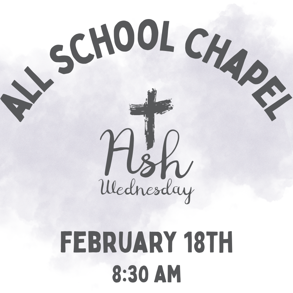 Join us for All-School Chapel on Ash Wednesday, February 18, at 8:30 am, as our community gathers for a quiet, reflective service marking the beginning of Lent—a season of intention, growth, and renewal. Families are warmly invited to join us as we pause together in this meaningful moment.